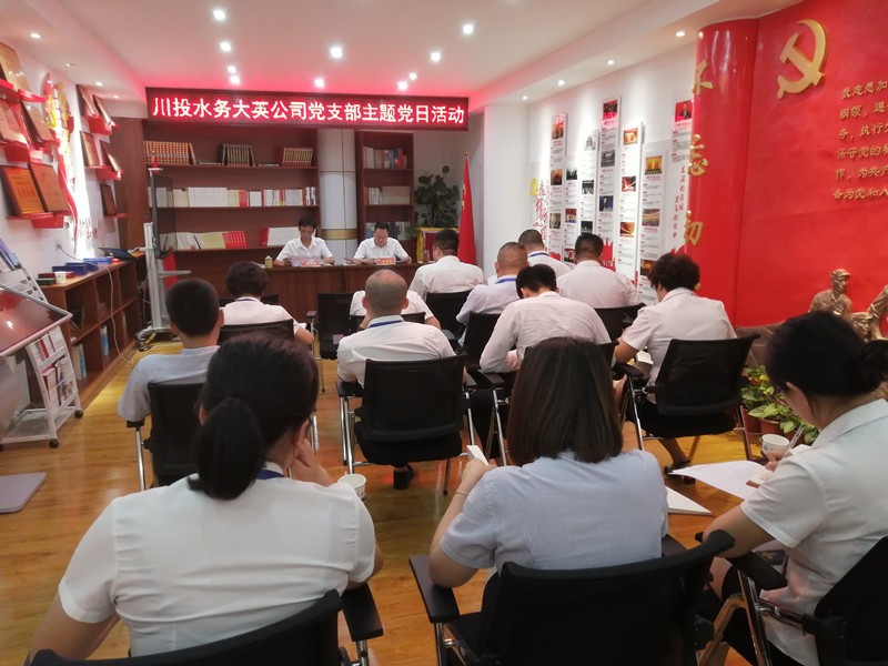 6月25日下午,川投水務大英水司開展主題黨日活動暨黨員大會。黨支部組織委員、副總經理、工會主席王洪先,全體正式黨員參加會議,會議由黨支部副書記周義雙主持。