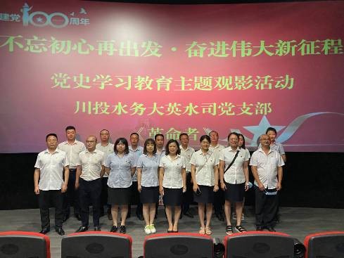 為深入開(kāi)展黨史學(xué)習(xí)教育,慶祝中國(guó)共產(chǎn)黨成立100周年,進(jìn)一步在企業(yè)中興起觀(guān)看紅色影片、更加愛(ài)黨愛(ài)國(guó)的持續(xù)熱潮。根據(jù)川投水務(wù)集團(tuán)黨史學(xué)習(xí)教育領(lǐng)導(dǎo)小組通知要求和公司黨支部七月主題黨日活動(dòng)計(jì)劃。7月28日下午,大英水司黨支部組織全體黨員、預(yù)備黨員、入黨積極分子,在大英永逸電影院5號(hào)廳觀(guān)看紅色電影《革命者》。進(jìn)一步引導(dǎo)黨員干部群眾發(fā)揚(yáng)紅色傳統(tǒng),傳承紅色基因,賡續(xù)紅色血脈。