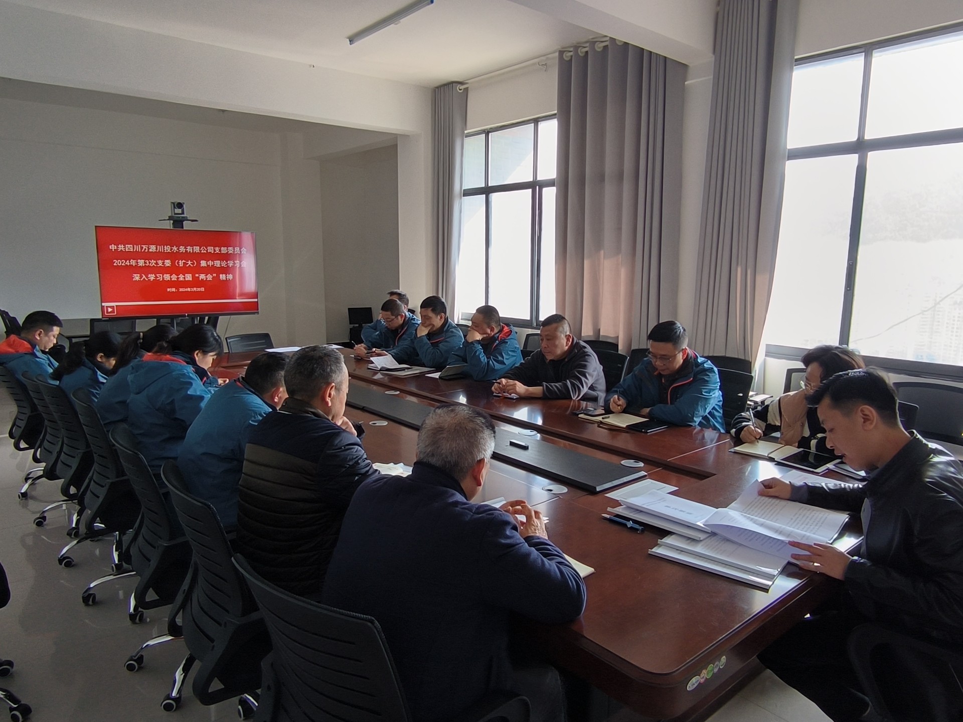 3月20日下午,萬源水司組織召開支委(擴大)學習會議,學習貫徹習近平總書記在全國“兩會”期間的重要講話和全國“兩會”精神。公司黨支部書記、執(zhí)行董事、總經(jīng)理李至彬主持會議,公司領導班子成員、中層干部參加了會議。