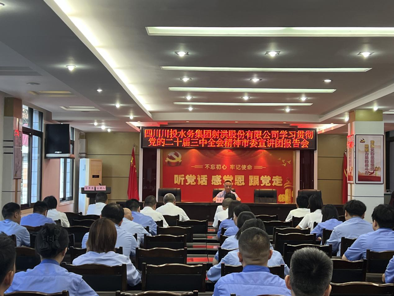 9月13日,川投水務射洪公司舉行學習貫徹黨的二十屆三中全會精神市委宣講團報告會。遂寧市勞動模范、射洪市委宣講團勞模工匠宣講分團成員、公司制水調(diào)度班班長陳建峰同志作宣講報告,射洪市總工會代表、公司領(lǐng)導班子、全體黨員、職工代表共計50余人參加了會議。