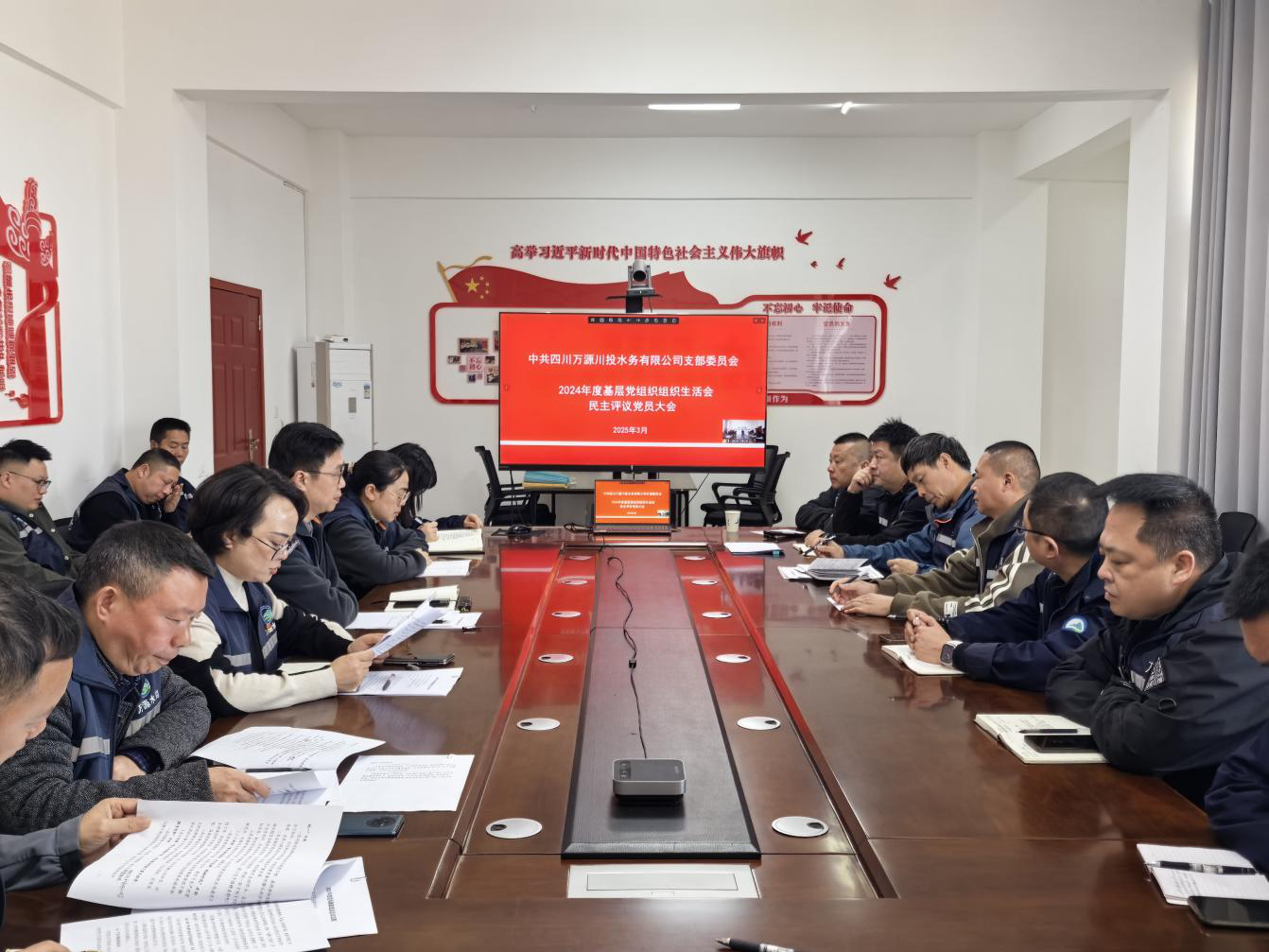 3月26日上午,川投水務(wù)萬源公司黨支部召開2024年度基層黨組織組織生活和民主評議黨員大會,全體黨員參加會議,支部組織委員、副總經(jīng)理胡兵主持會議。