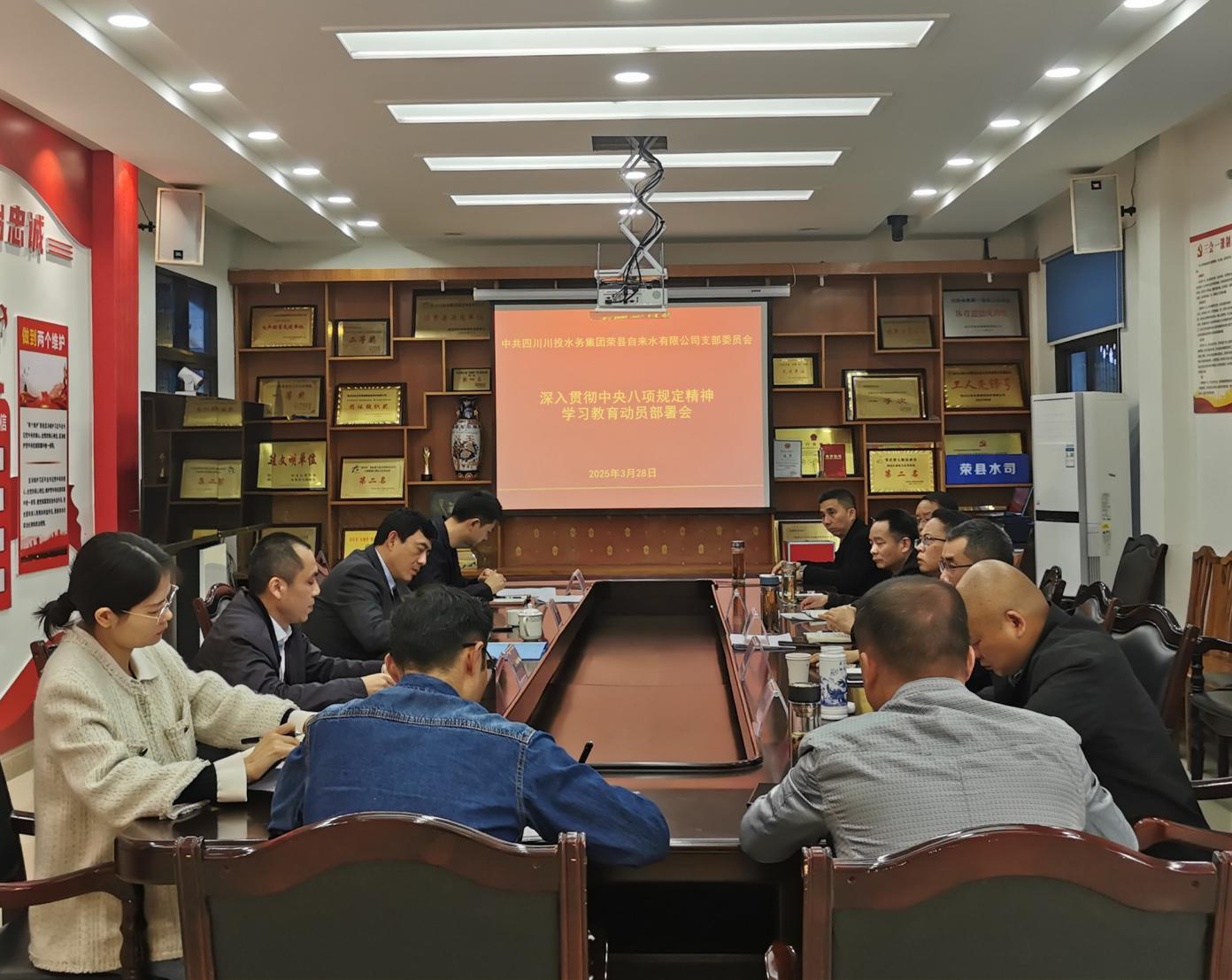 為貫徹落實(shí)川投水務(wù)集團(tuán)黨委關(guān)于學(xué)習(xí)教育工作相關(guān)要求,2025年3月28日,公司黨支部在底樓會議室召開深入貫徹中央八項(xiàng)規(guī)定精神學(xué)習(xí)教育動(dòng)員部署會。會議由支部書記、執(zhí)行董事、總經(jīng)理龔慶主持,公司黨支部全體黨員參加會議。