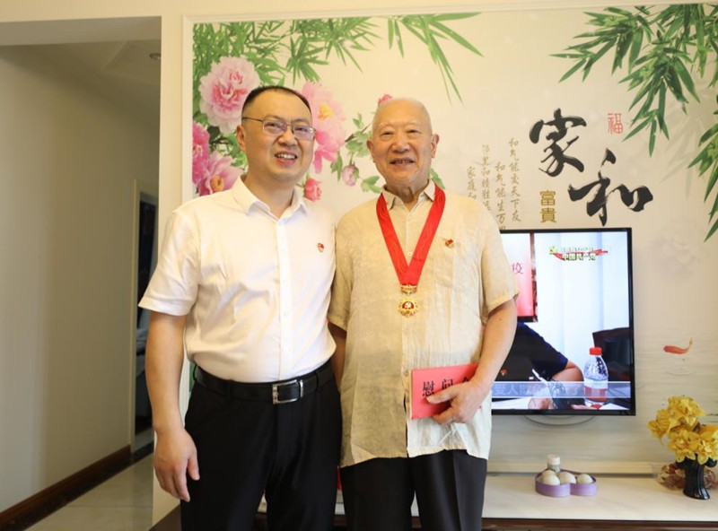 在老黨員劉大榮家里,李旭東關(guān)切地詢(xún)問(wèn)了劉老和老伴的身體狀況及生活現(xiàn)狀,親手為劉大榮同志佩戴上由中共中央頒發(fā)的“光榮在黨50年”紀(jì)念章并送上慰問(wèn)金,祝福老人家身體安康、健康長(zhǎng)壽。80多歲高齡的老黨員劉大榮精神抖擻,他用樸素的話語(yǔ)表達(dá)了自己的感激之情:“感謝黨的恩情,感謝集團(tuán)對(duì)我們的關(guān)懷!”