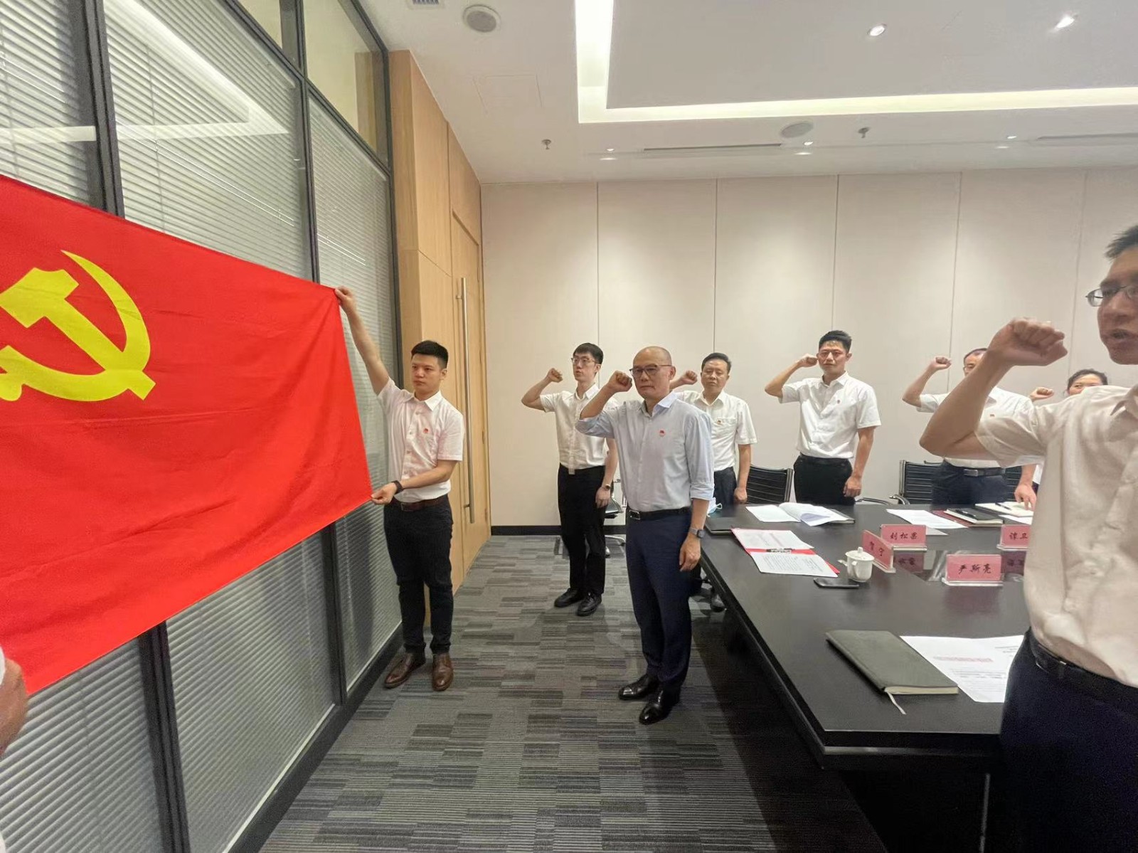 大會(huì)在莊嚴(yán)的國(guó)歌聲中開(kāi)幕,黨委書記賀寧同志帶領(lǐng)全體預(yù)備黨員同志們,面向黨旗莊嚴(yán)宣誓,入黨誓詞句句鏗鏘、聲聲振耳、激蕩人心,我們將“不忘初心,牢記使命”為黨的事業(yè)接續(xù)奮斗鑄就更加輝煌的明天!同時(shí),正式黨員同志們也再次重溫了入黨誓詞。