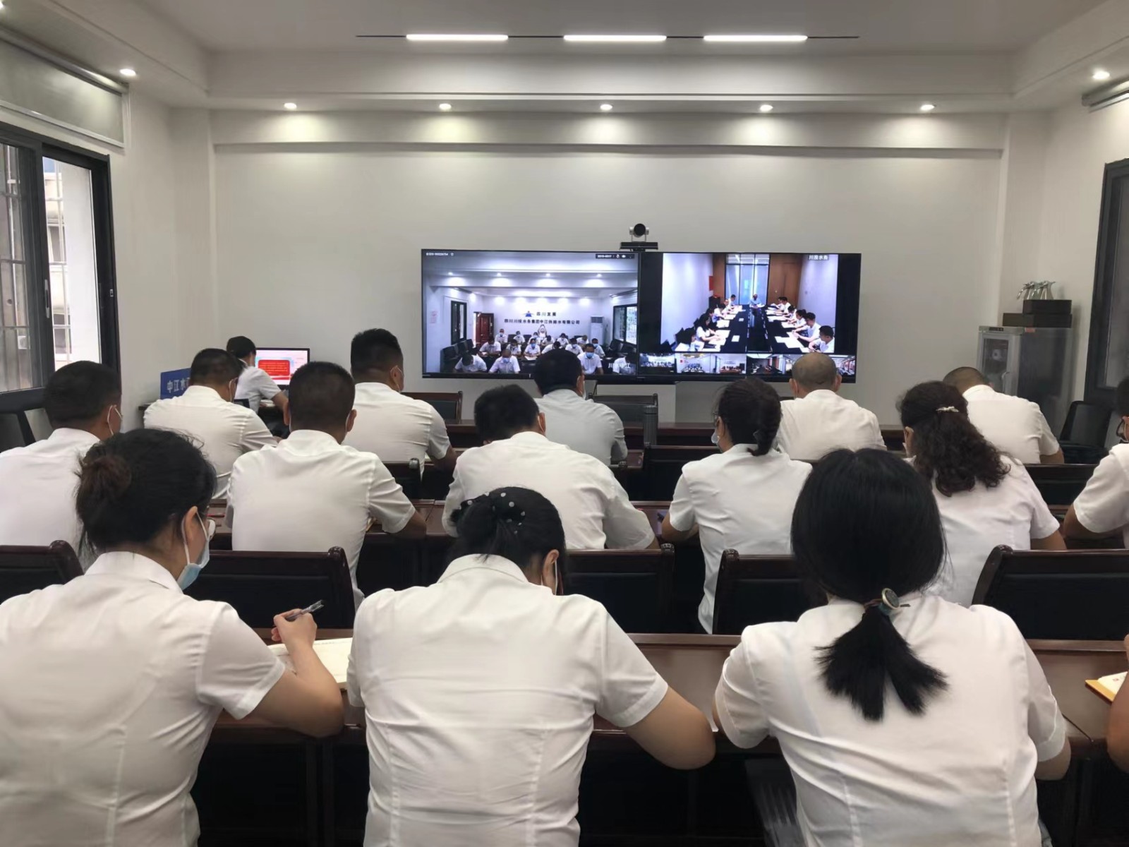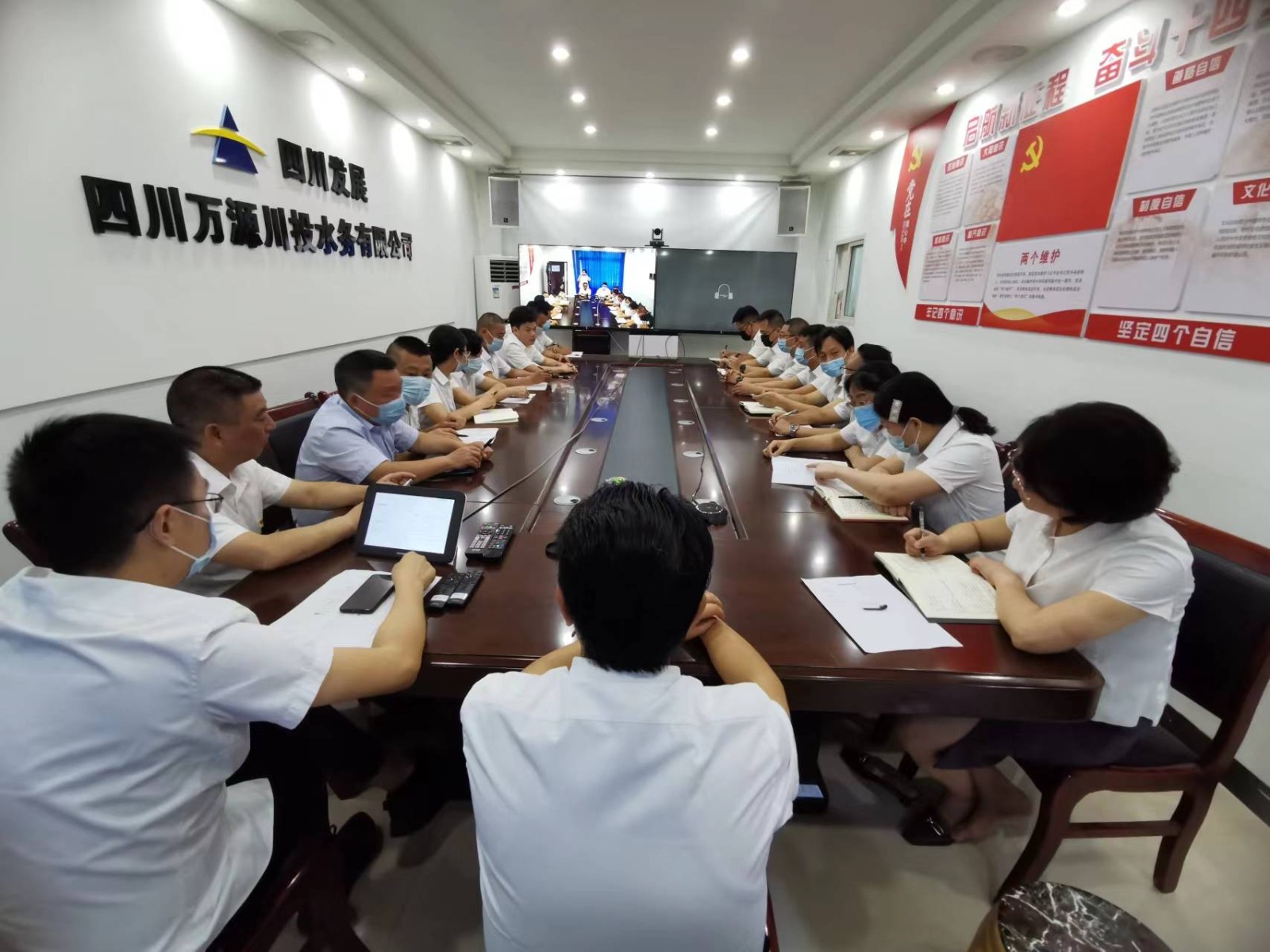 大會(huì)在熱烈的掌聲中圓滿閉幕,川投水務(wù)集團(tuán)下屬各級(jí)黨組織以視頻會(huì)議形式參加會(huì)議。
