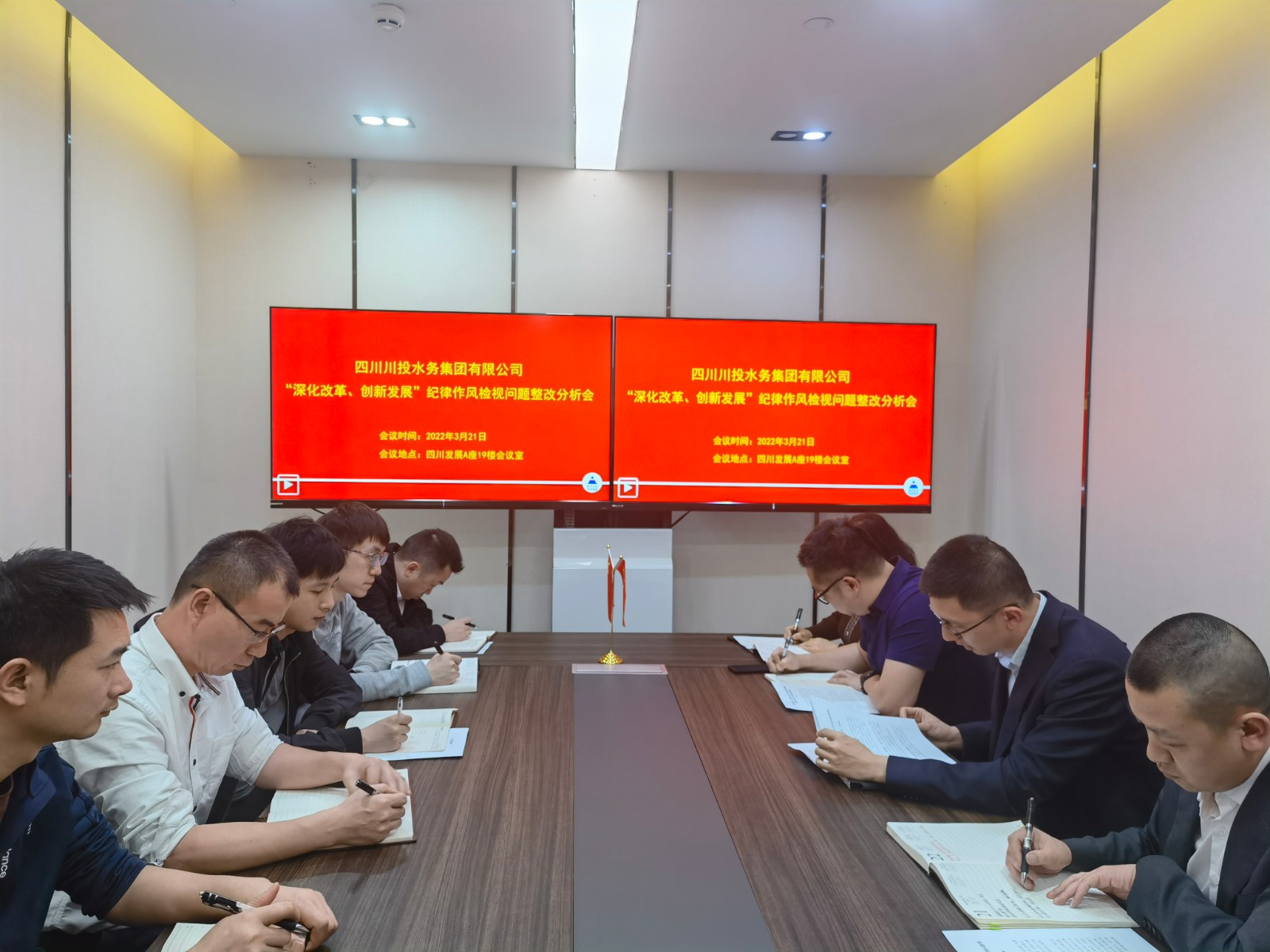 2022年3月21日,為貫徹落實(shí)四川發(fā)展黨委“深化改革、創(chuàng)新發(fā)展”紀(jì)律作風(fēng)整頓相關(guān)工作要求,開(kāi)展好第二階段“緊盯突出問(wèn)題,全面集中整改”工作任務(wù),進(jìn)一步加強(qiáng)督促與指導(dǎo)工作同頻共振,切實(shí)將整改措施落到實(shí)處。川投水務(wù)集團(tuán)本部認(rèn)真組織召開(kāi)了“深化改革、創(chuàng)新發(fā)展”紀(jì)律作風(fēng)問(wèn)題整改情況分析會(huì),會(huì)議由川投水務(wù)集團(tuán)黨委委員、副總經(jīng)理嚴(yán)斯亮主持。
