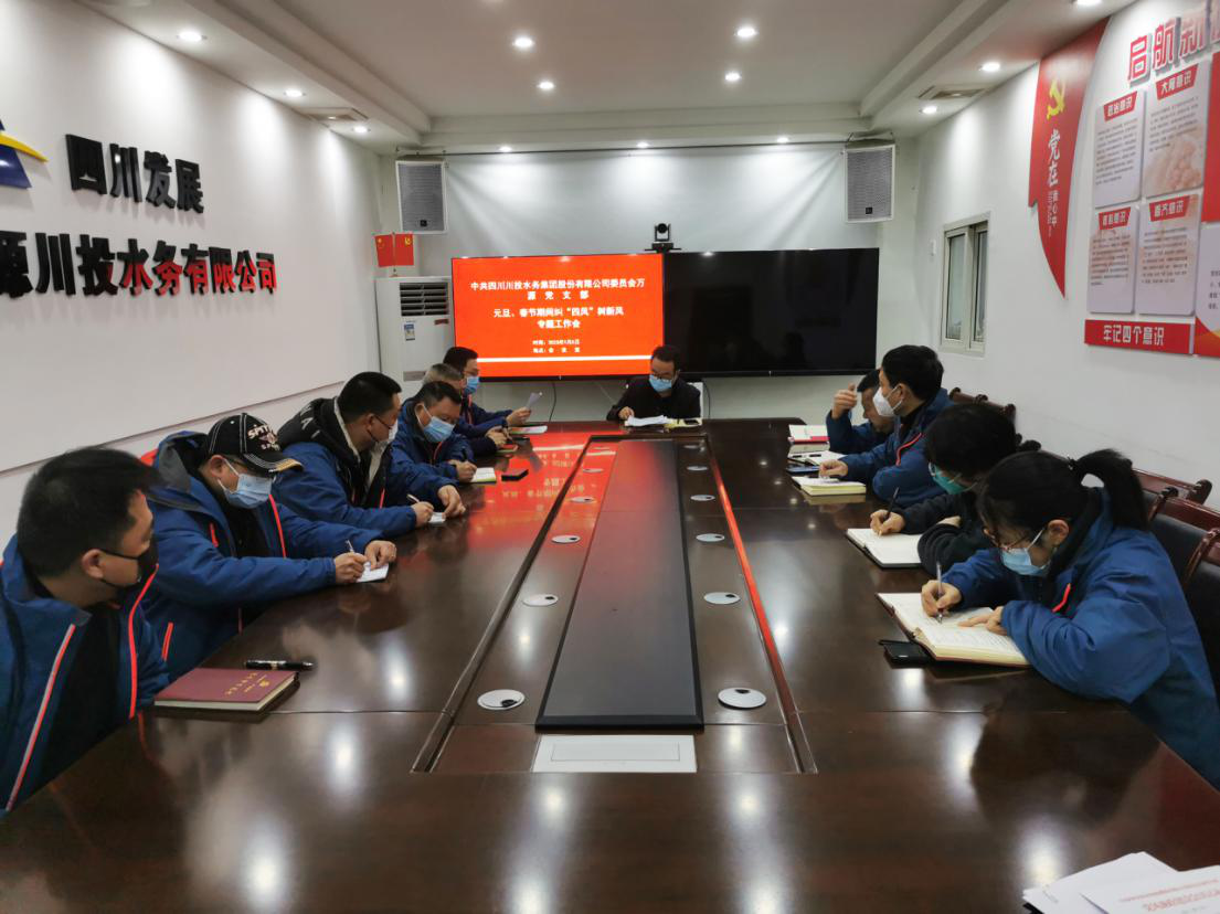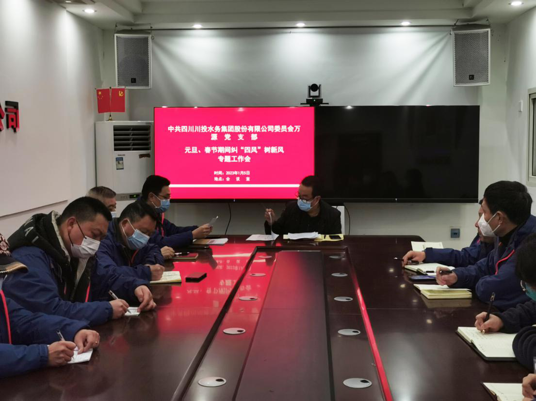 2023年春節(jié)將至,為馳而不息的做好防治節(jié)日“四風(fēng)”問題,營造“風(fēng)清氣正”的節(jié)日氛圍,按照川投水務(wù)集團(tuán)黨委、紀(jì)委的工作要求,萬源公司黨支部于1月5日上午組織召開了元旦、春節(jié)期間糾“四風(fēng)”樹新風(fēng)專題工作會(huì)。公司領(lǐng)導(dǎo)班子成員、部門副職及以上管理人員參加會(huì)議。