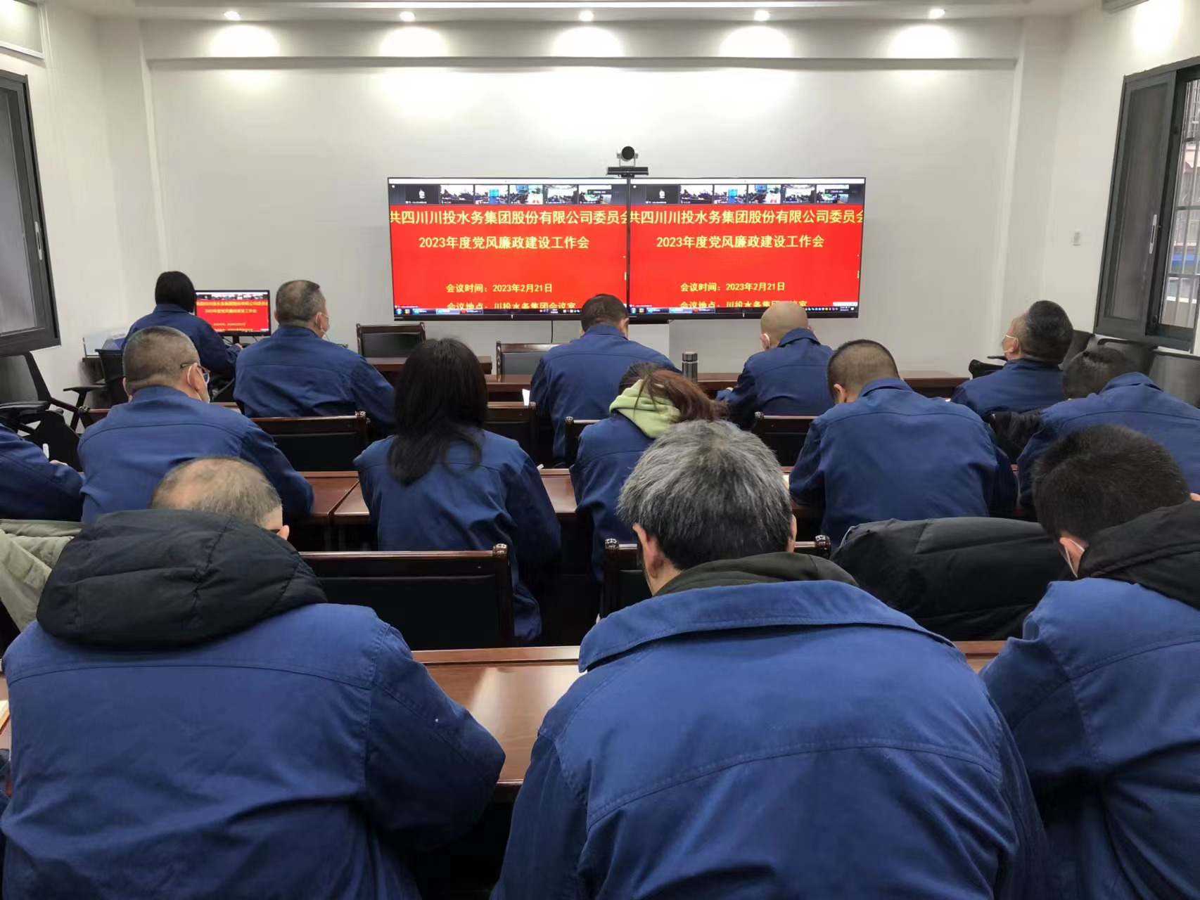 2023年2月21日上午10點,為深入貫徹落實黨的二十大精神,堅決貫徹二十屆中央紀委二次全會、省紀委十二屆二次全會精神,聚焦四川發(fā)展、四川省生態(tài)環(huán)保集團2023年度黨風廉政建設工作部署,川投水務集團黨委組織召開2023年度黨風廉政建設工作會,會議由川投水務集團黨委委員、副總經(jīng)理嚴斯亮主持。公司本部領(lǐng)導班子成員、各部門負責人、全體員工、各所屬公司領(lǐng)導班子成員及中層管理人員通過視頻+現(xiàn)場形式參會。
