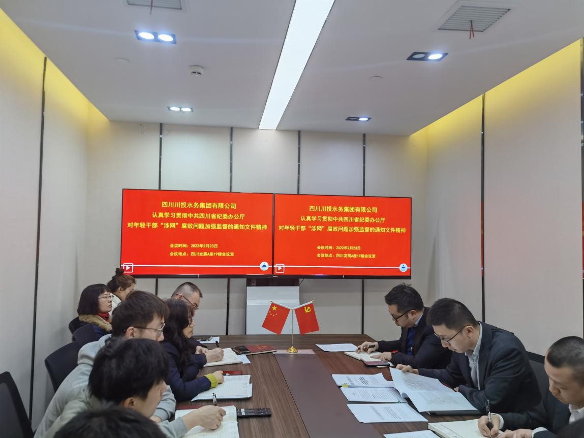 2022年2月23日,川投水務(wù)集團(tuán)組織召開專題宣貫會(huì)議,專題傳達(dá)學(xué)習(xí)省紀(jì)委辦公廳《關(guān)于對年輕干部“涉網(wǎng)”腐敗問題加強(qiáng)監(jiān)督的通知》文件精神,川投水務(wù)集團(tuán)黨委委員、副總經(jīng)理嚴(yán)斯亮主持會(huì)議,并提出相關(guān)學(xué)習(xí)貫徹要求。