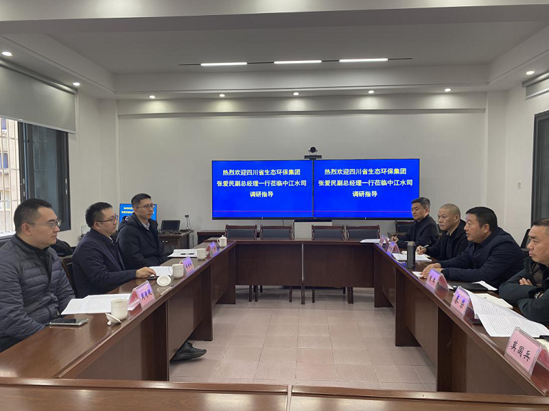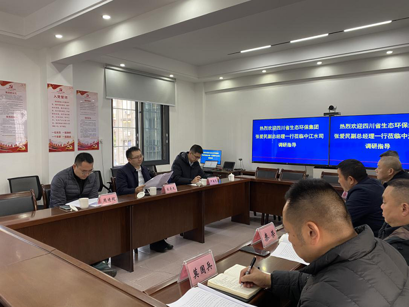 2023年11月22日,四川省生態(tài)環(huán)保集團副總經(jīng)理張愛民、戰(zhàn)略發(fā)展部副部長周靖超,川投水務(wù)黨委委員、副總經(jīng)理嚴斯亮一行赴中江公司開展調(diào)研指導(dǎo)工作。中江水司黨支部書記、董事長、總經(jīng)理朱禹等班子成員參加調(diào)研會。