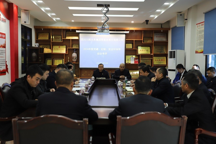 12月16日上午,川投水務(wù)集團(tuán)黨委委員、副總經(jīng)理唐韜率川投水務(wù)第二考核組對榮縣公司開展2024年度黨建、紀(jì)檢、安全環(huán)保等綜合考評工作。榮縣公司黨支部書記、執(zhí)行董事、總經(jīng)理龔慶及副總經(jīng)理趙勇、中層管理干部、職工代表共計24人參加會議。