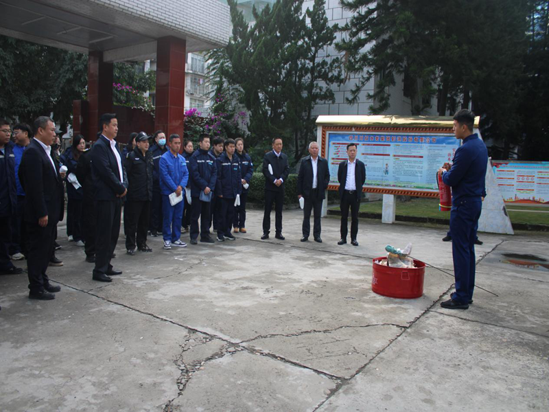 隨后,現(xiàn)場模擬火情,組織模擬消防逃生演練,現(xiàn)場演示講解干粉、二氧化碳和水基滅火器的使用方法和注意事項。